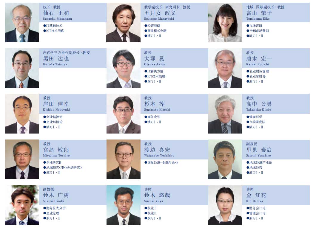 本校为实现培养事业创造专家的目标,进行了适当的教师配置。在基础理论重视的课程中,主要配置研究型教师,而随着实务元素的增强,实务教师的比例也随之增加。为了覆盖广泛的MBA课程,兼职教师中也聚集了各个领域的专家。
